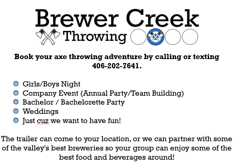 Brewer Creek Axe Throwing is a Mobile Axe Throwing Experience in Helena, Montana.